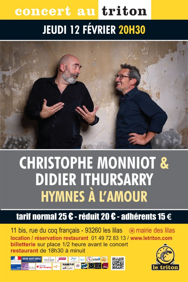 « Christophe Monniot et Didier Ithursarry n’en sont pas à leur première collaboration. Leur art en duo relève d’un véritable dialogue. Un même souffle inspiré traverse les anches des saxophones et habitent les lames de l’accordéon. Tous deux ont enraciné leur pratique dans les musiques populaires des bals musette et sont par ailleurs d’ardents improvisateurs. Brillants techniciens, ils n’en sont pas moins de sensibles créateurs. De leur complicité résultent des échanges porteurs tour à tour, d’énergie, de sensibilité, de précision ou de folie. » Nicole Videmann